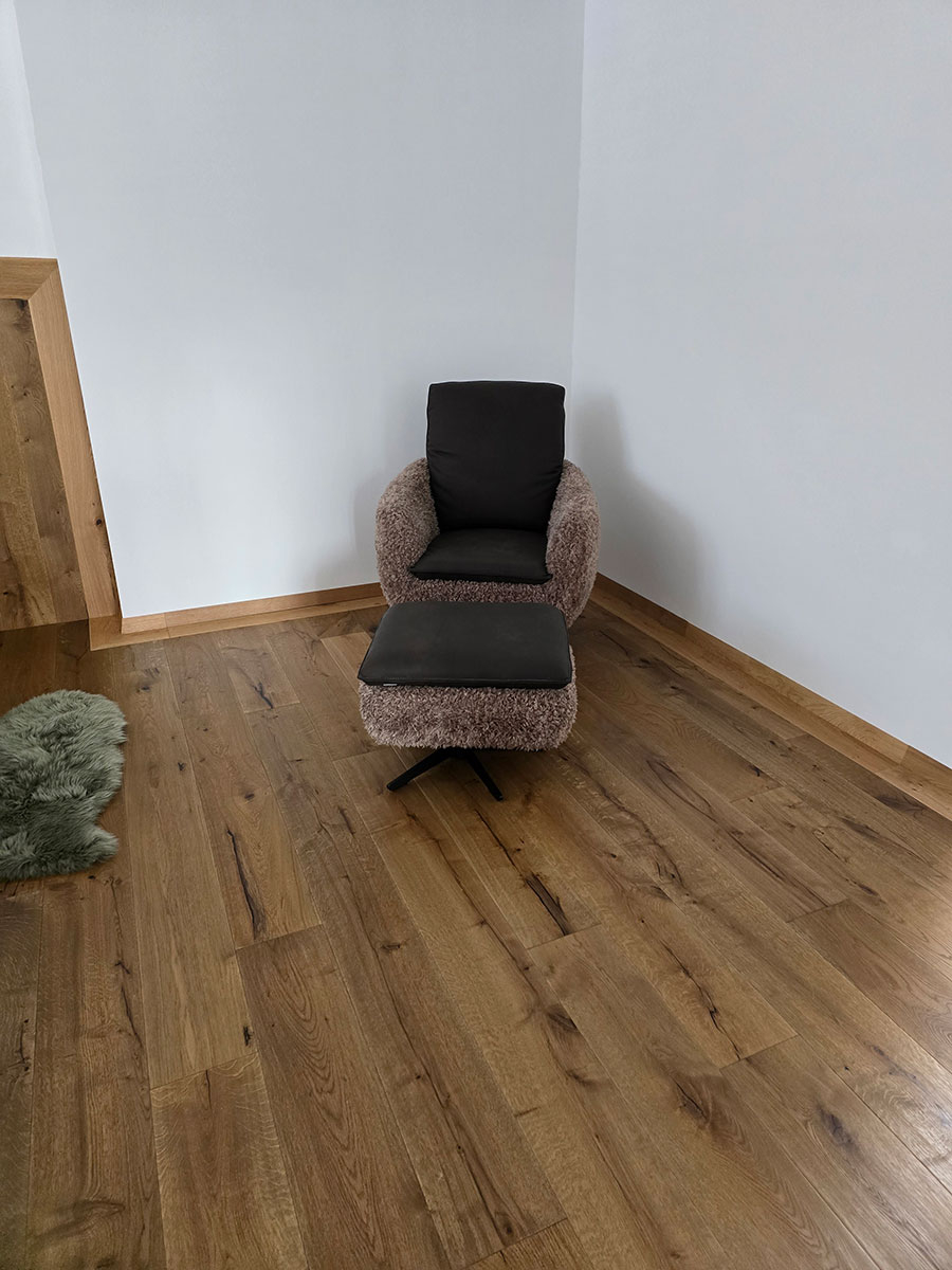Neben dem Endergebnis werden auch handwerkliche Details und Abläufe sichtbar. So entsteht ein authentischer Eindruck davon, wie sorgfältige Planung, präzise Ausführung und Erfahrung im Bodenhandwerk zusammenwirken – auf der Baustelle ebenso wie im fertigen Raum.